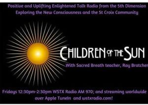 Children of the Sun is broadcast weekly, every Friday from 12:30pm-2:30 pm (AST) on AM 970 from St. Croix in the U.S. Virgin Islands and is also streamed live worldwide over Apple TuneIn, Tuneinradio, and many other apps. The show is hosted by Sacred Breath Teacher, Ray Bratcher, and aims to be a positive and uplifting program centered on personal and collective Enlightenment for St. Croix, the U.S. Virgin Islands, the Caribbean region, and the World!
